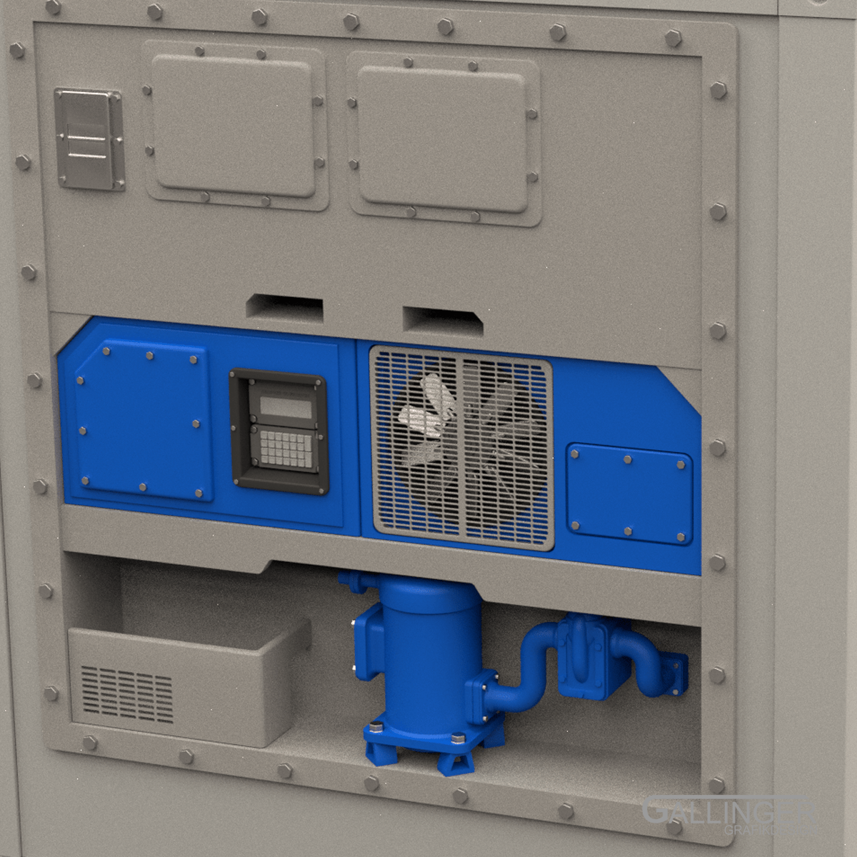 Die Besonderheit liegt in dem detailreichen Kühlaggregat im hinteren Bereich des Behälters.