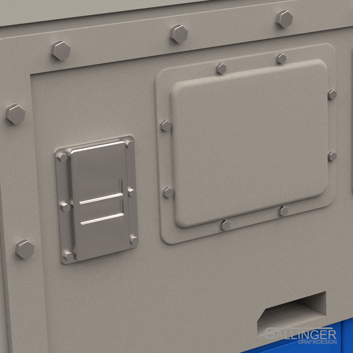 Die Vorderseite verfügt über 2 Türen ohne Funktion. Mithilfe eines Dremels und entsprechender Bohrungen können diese über die Zarge bei Bedarf auch funktional gestaltet werden.