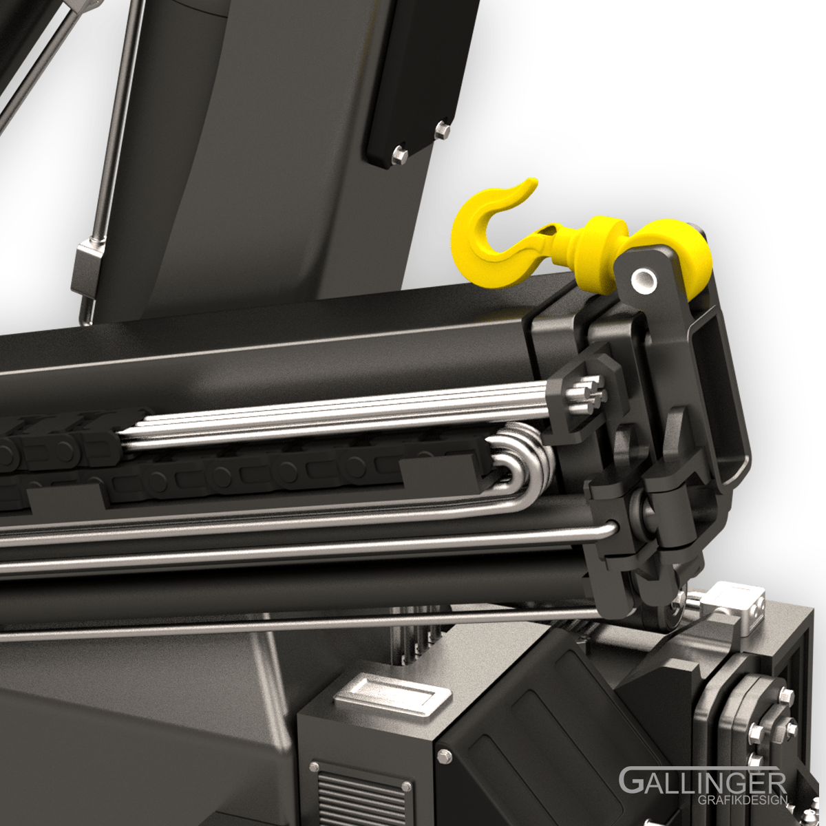 Außerdem verfügt dieses Modell sowohl über eine angedeutete Schleppkette, als auch die hydraulische Steuereinheit. Weitere Kleinstelemente runden das Modell ab.