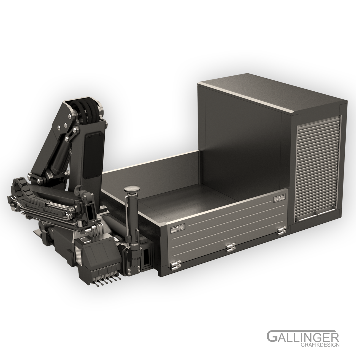 Darüber hinaus lassen sich die Bordwände optional öffnen sowie der Kran per Hand aufklappen.
